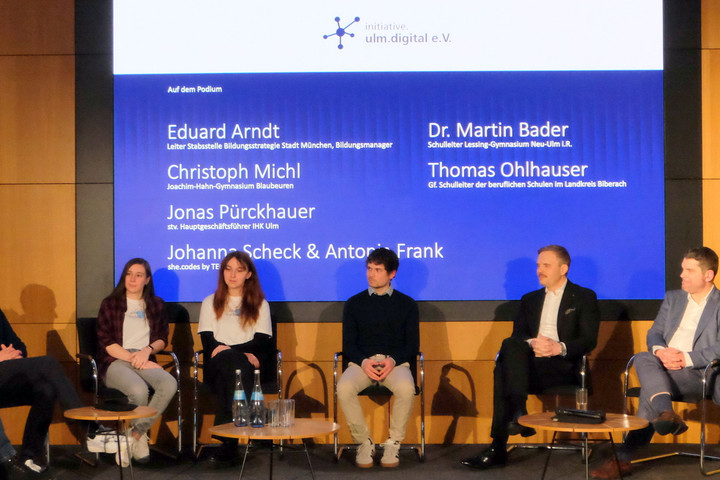 Auch die wirtschaftliche Perspektive kam zur Sprache. Jonas Pürckhauer, stellvertretender Hauptgeschäftsführer der IHK Ulm, unterstrich die wachsende Bedeutung qualifizierter Nachwuchskräfte für die Wettbewerbsfähigkeit der Unternehmen. Ohne ausreichend gut ausgebildete Fachkräfte gerate die Innovationskraft der Region in Gefahr. So würden in Baden-Württemberg bis 2035 rund 15 000 Fachkräfte, viele aus dem MINT-Bereich, fehlen. Künstliche Intelligenz werde die Informatik-Berufe in den nächsten Jahren verändern, so Pürckhauer. „Informatik wird aber mehr denn je gebraucht, vielleicht anders als heute“, betonte er.