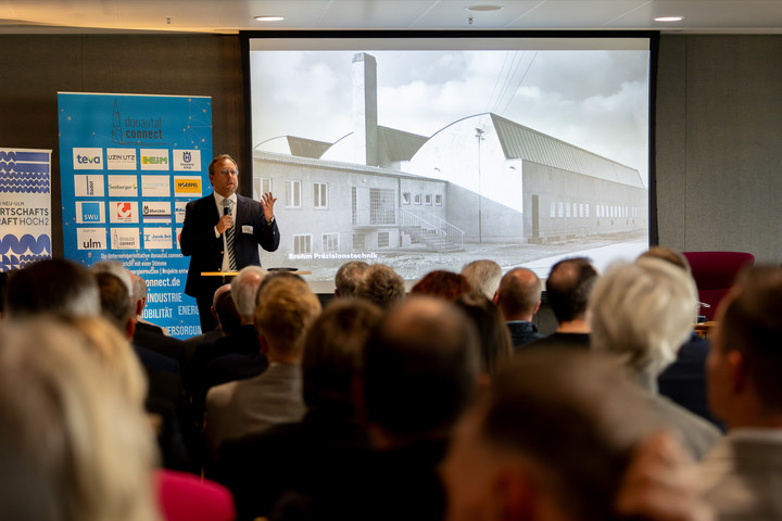 Ulms Oberbürgermeister Martin Ansbacher freute sich ganz besonders über den Anlass der Veran- staltung, die bei der Firma Seeberger stattfand: „Das ist ein Jubiläum, das uns mit Stolz erfüllt, denn das Donautal verkörpert wie kaum ein anderer Ort die wirtschaftliche Stärke, die Innovations- kraft und den Zusammenhalt unserer Stadt.“ Für den Oberbürgermeister ist das Industriegebiet Do- nautal „ein eindrucksvolles Stück Stadtgeschichte“ und zugleich ein Beispiel dafür, was aus Tat- kraft, Partnerschaft und Weitblick entstehen kann.