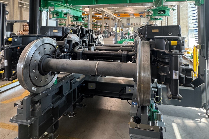 Auf einer Hallenfläche von rund 4.500 Quadratmetern wurde ein Maschinenpark installiert, der alle Schritte der Komponentenrevision abdeckt. Herzstück ist eine MAE-Radsatzpresse für das Auf- und Abpressen von Rädern, Bremsscheiben und Lagern. Ergänzt wird sie durch Drehgestell-Prüfstände zur Ermittlung von Aufstandskräften und Geometrie, eine vollautomatische Federnprüfanlage sowie ergonomische Hub- und Rotationssysteme, mit denen sich komplette Drehgestelle beidseitig bearbeiten lassen. Ein Drehgestell-Rotator ermöglicht die 360°-Bearbeitung. Für zerstörungsfreie Prüfungen (ZFP) stehen Ultraschall-, Magnetpulver- sowie Sichtprüfstände bereit. Die Oberflächenaufbereitung erfolgt in einer modernen Sandstrahl- und Lackieranlage.Eine offene, anpassbare Softwarearchitektur erlaubt es, Prüfprogramme schnell auf unterschiedliche Fahrzeugtypen und Fremdprodukte umzustellen – nach Bereitstellung der nötigen Datensätze. Sämtliche Arbeitsschritte werden digital erfasst – von Maß- und Rauheitsmessunen über Presskräfte bis hin zu Anzugsdrehmomenten. Die ermittelten Daten fließen in ein Protokoll, das den Kunden als PDF zur Verfügung gestellt wird und eine lückenlose Bauteilhistorie sicherstellt.