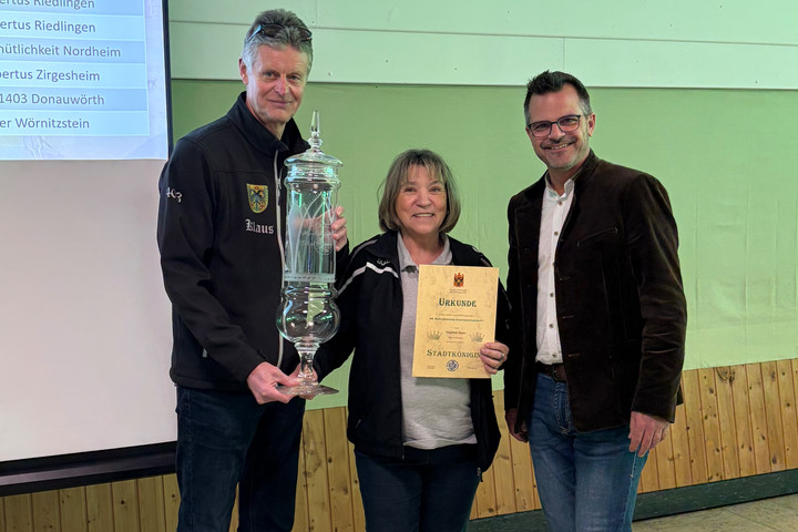 Ein besonderer Höhepunkt des Nachmittags war die Proklamation der neuen Stadtkönigin. Den Titel sicherte sich Sieglinde Baars von Adler Wörnitzstein mit einem herausragenden 20,4-Teiler. Die feierliche Kür nahm der Schützenkommissar und Oberbürgermeister der Stadt Donauwörth, Jürgen Sorré, vor. Unter dem Applaus der Anwesenden wurde der neuen Stadtkönigin die Königswürde verliehen – ein Moment, der die Präzision und das Können im Sportschießen eindrucksvoll unterstrich.