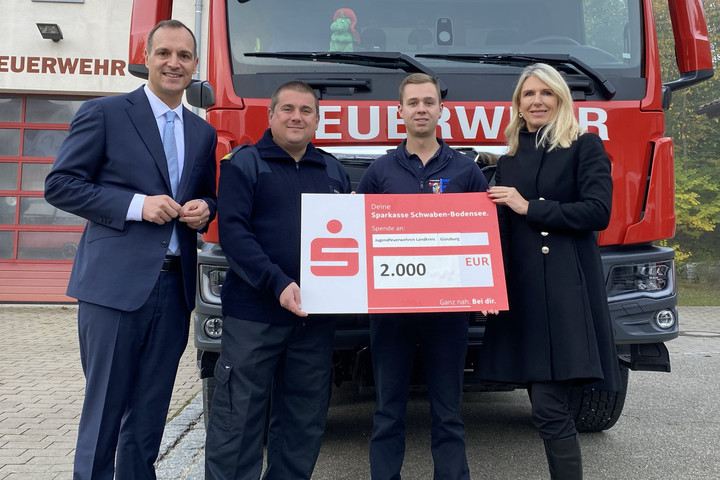 „Die Jugendfeuerwehren übernehmen eine wichtige Aufgabe und leisten wertvolle Arbeit für unsere Gemeinschaft. Dafür gebührt ihnen großer Respekt“, sagte Daniel Gast, Vorstandsvorsitzender der Sparkasse Schwaben-Bodensee, bei der Übergabe des Spendenschecks.