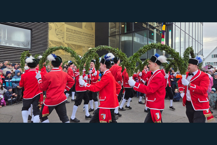 Es ist ein Schauspiel, das man nicht jedes Jahr erlebt. Nur alle sieben Jahre ziehen die Schäffler aus Dinkelscherben wieder durch die Region – und am Freitag, den 13. Februar, machten sie Halt bei der Brauerei Ustersbach. Schon von Weitem war zu erkennen: Hier passiert etwas Besonderes. Der Platz war gefüllt, Familien standen dicht gedrängt, Kinder reckten neugierig die Hälse – und selbst aus den Fenstern der Brauerei verfolgten Mitarbeiter und der Brauer das Geschehen mit sichtlicher Freude. Der Schäfflertanz ist gelebte Tradition – und Dinkelscherben besitzt neben Nonnenhorn am Bodensee die älteste Schäfflertanztradition in Schwaben. Bereits 1893 wurde hier erstmals nach Münchner Vorbild getanzt. Daraus entwickelte sich eine eigene, bis heute bestehende Tradition, die im Sieben-Jahres-Rhythmus gepflegt wird.