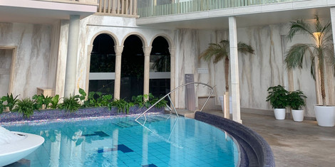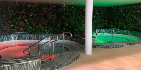 • die Re-flexion Sauna unter der Thermenkuppel mit wechselnden Lichtinszenierungen bei angenehmen 75 °C,