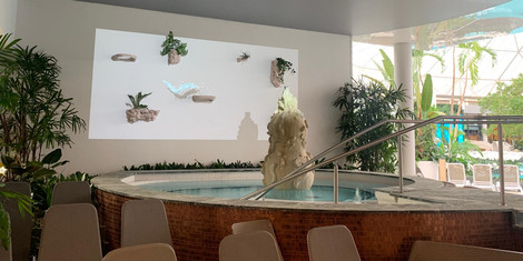 Animierte Wasserstrahlen bewegen sich spielerisch zwischen skulpturalen Elementen und Pflanzen. Gäste werden selbst Teil dieses immersiven Kunstwerks, das digitale und physische Welten verbindet und Momente der Leichtigkeit, Vorstellungskraft und Entschleunigung schafft. Ein Ort, an dem Wellness nicht nur körperlich, sondern auch emotional erfahrbar wird.